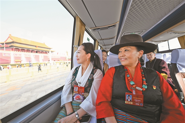 從春天啟程,向未來進(jìn)發(fā)。下午2時許,西藏代表委員抵達(dá)駐地,向大會報到。