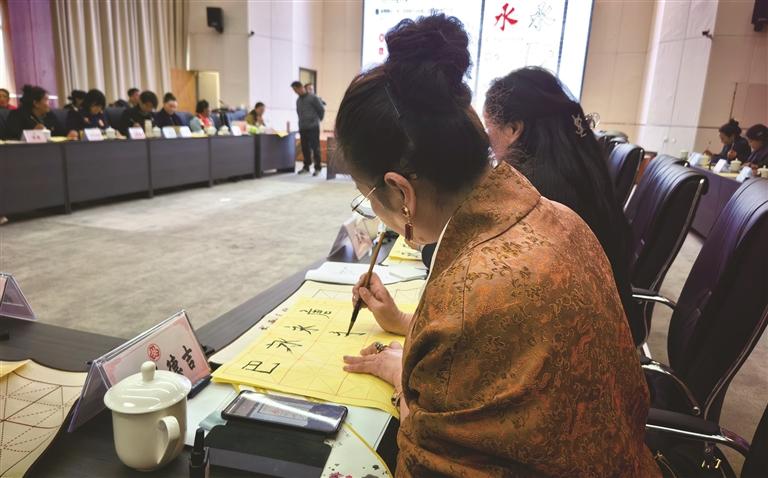 婦女代表在筆墨書香中感受中華優(yōu)秀傳統(tǒng)文化魅力。