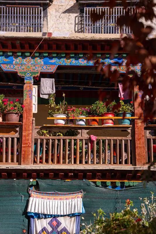 西藏的冬天漫長,寒風凜冽,小窗能牢牢鎖住屋內(nèi)的熱氣,讓溫暖留得更久,窗沿兩側的黑色裝飾,也不只是好看,更能在日照時吸收熱量,悄悄為房屋添暖,是老輩人藏在細節(jié)里的保溫巧思。如今日子好了,氣候也有了些許變化,大窗、落地窗漸漸走進藏式民居,陽光肆意灑進屋里,是生活溫柔的模樣。而那些高一點的建筑,比如拉薩的古建大院,都有著下寬上窄的收分墻,當?shù)厝私兴靶眽Α?,底層厚重的石墻扎在土里,上層漸漸輕薄,看似簡單的設計,藏著滿滿的實用考量。