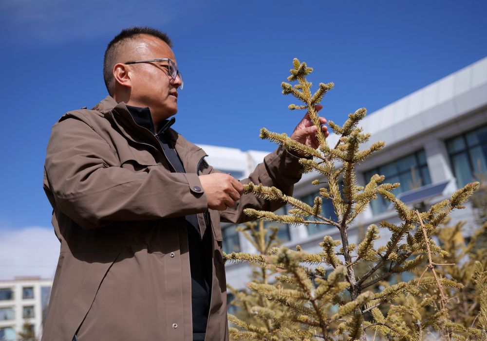 3月20日上午10點30分,扎西像往常一樣來到市科技局的院子里,仔細查看樹木的長勢。他彎腰伸手,摸了摸樹的葉子和枝條,又踩了踩樹下的土壤?!霸蕉闆r總體穩(wěn)定,也有了返青跡象,可以開始澆水、施肥了?!痹餍老驳卣f。
