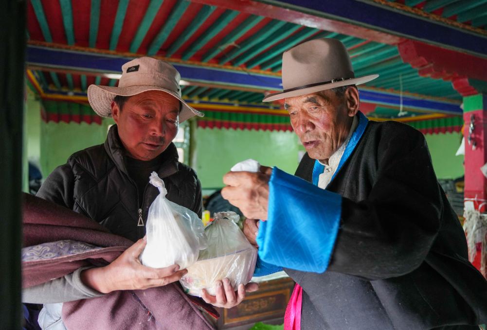 達瓦片多和女婿在整理酥油(3月12日攝)。