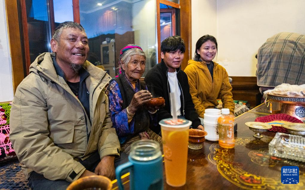 家住西藏山南市扎囊縣桑耶鎮(zhèn)的老人格桑美多,見(jiàn)證了西藏從封建農(nóng)奴制到社會(huì)主義新天地的滄桑巨變。圖為格桑美多老人(左二)和家人一起看電視。新華社發(fā)