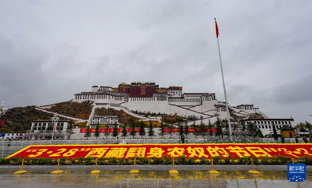 3月28日,布達(dá)拉宮廣場舉行升國旗儀式,隆重紀(jì)念西藏百萬農(nóng)奴解放67周年。新華社記者 丁增尼達(dá) 攝