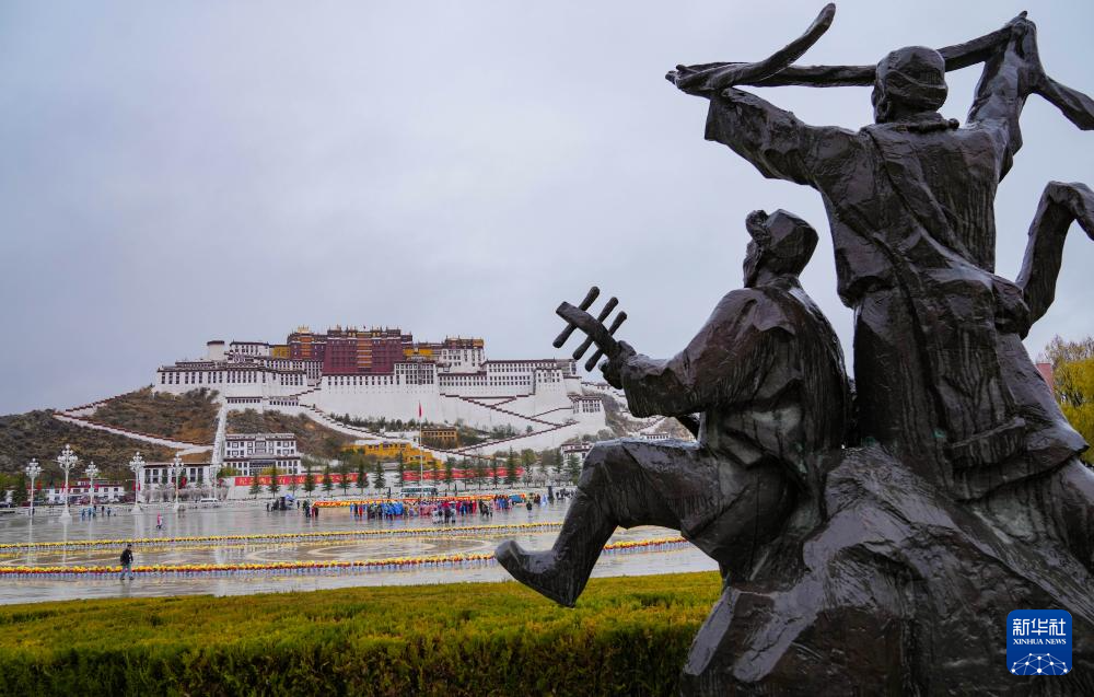 3月28日,群眾代表在布達(dá)拉宮廣場合影留念。新華社記者 晉美多吉 攝