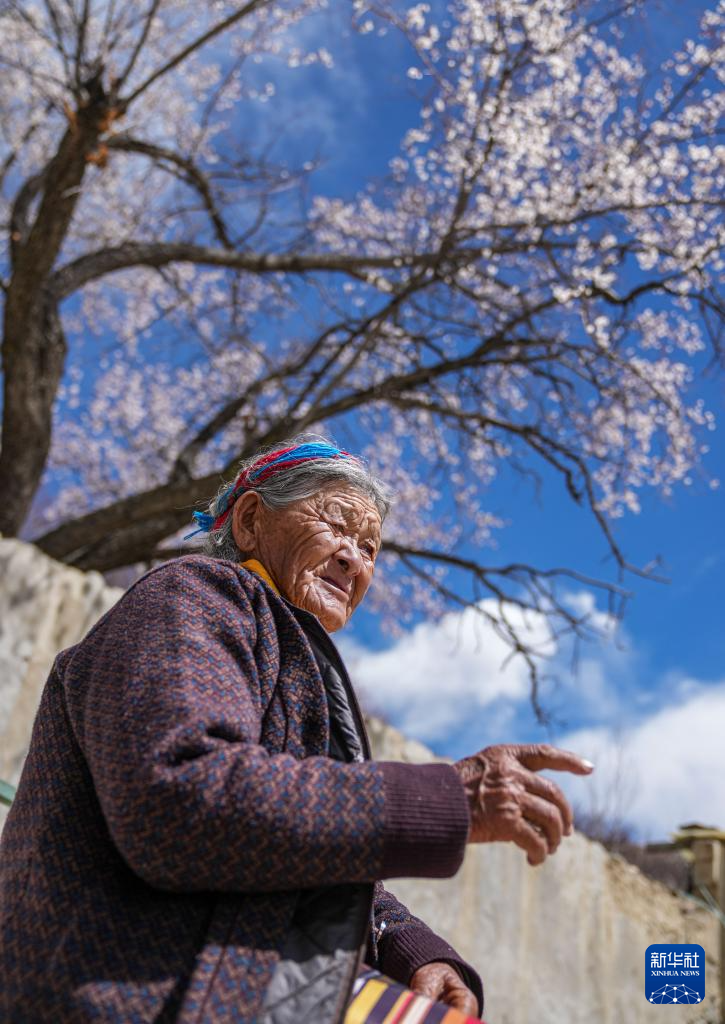 次仁桑姆在宗卡村家中曬太陽(3月26日攝)。新華社記者 晉美多吉 攝