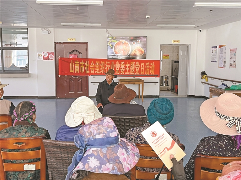 山南市社會(huì)組織行業(yè)黨委開展主題黨日活動(dòng),老黨員洛桑向大家講述新舊西藏對(duì)比。