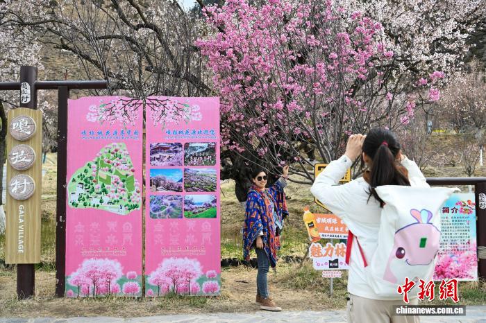 4月3日,游客在嘎拉村拍照留念。西藏林芝市嘎拉村被譽(yù)為“林芝桃花第一村”,是林芝市最佳的賞花地之一。中新社記者 貢嘎來松 攝