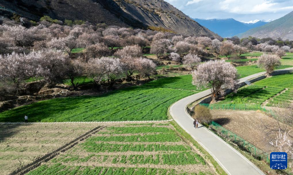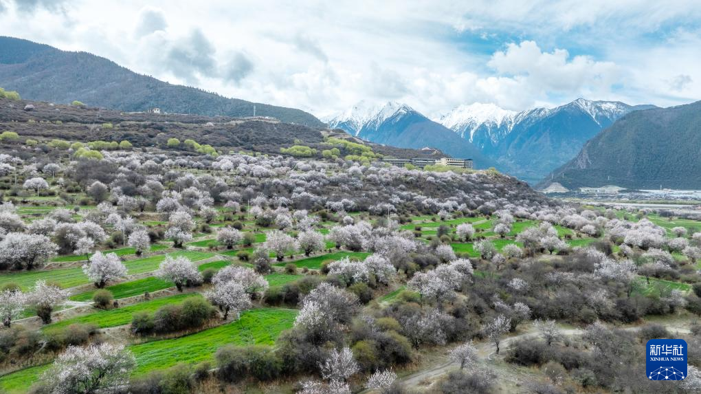這是4月2日在林芝巴宜區(qū)朵當村拍攝的桃林(無人機照片)。新華社記者 丁增尼達 攝