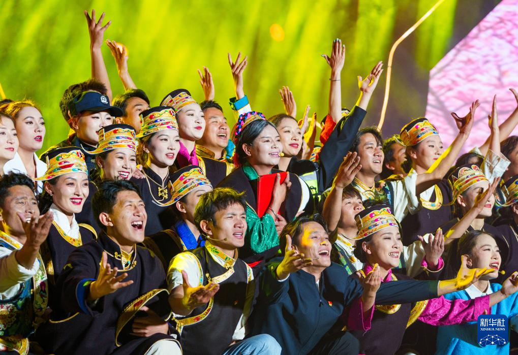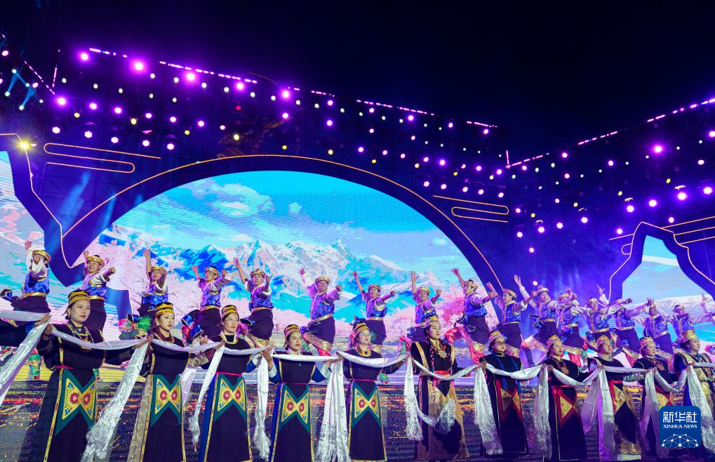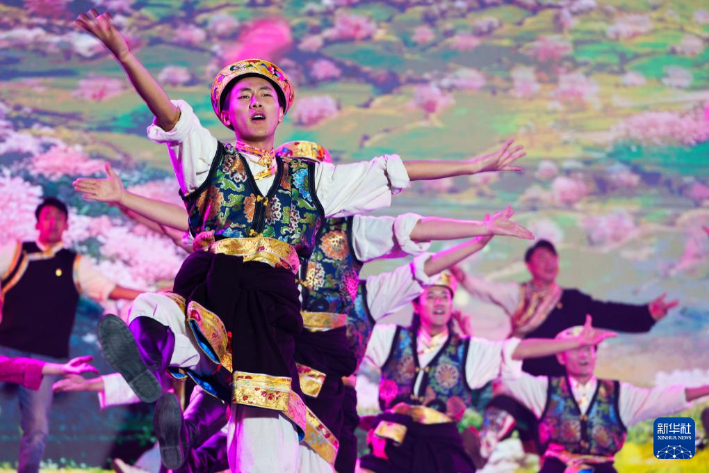 這是4月3日拍攝的林芝第二十三屆桃花旅游文化節(jié)開幕式文藝演出現(xiàn)場。新華社記者 丁增尼達 攝