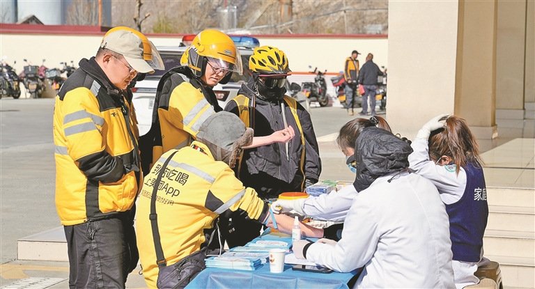 活動通過交通安全知識宣講、發(fā)放慰問品等形式,提升新就業(yè)群體安全意識;圍繞勞動維權、用工保障等內(nèi)容答疑解惑,指導依法維權。同時,提供健康檢測服務,邀請騎手代表參與驛站規(guī)劃建設。