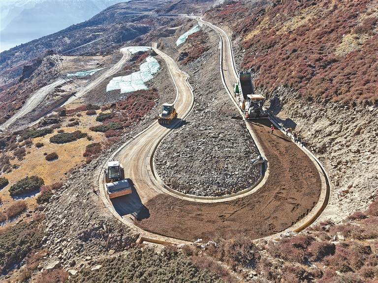 圖為吉隆縣國道216線岔口至薩勒鄉(xiāng)公路工程施工現(xiàn)場。