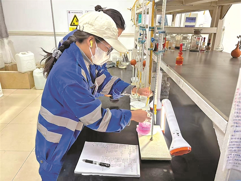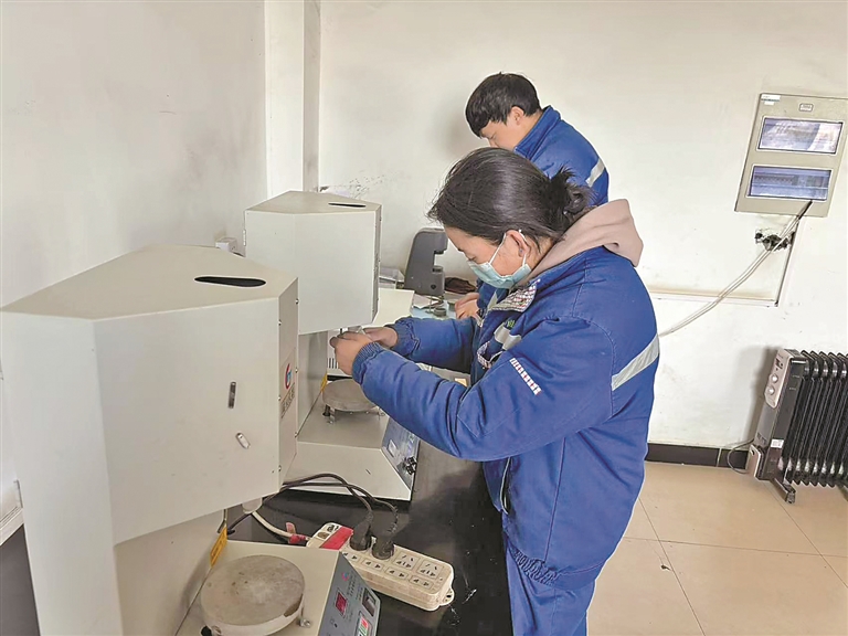 質(zhì)檢科工作人員在檢測(cè)出廠水泥品質(zhì)。記者 楊小娟 攝