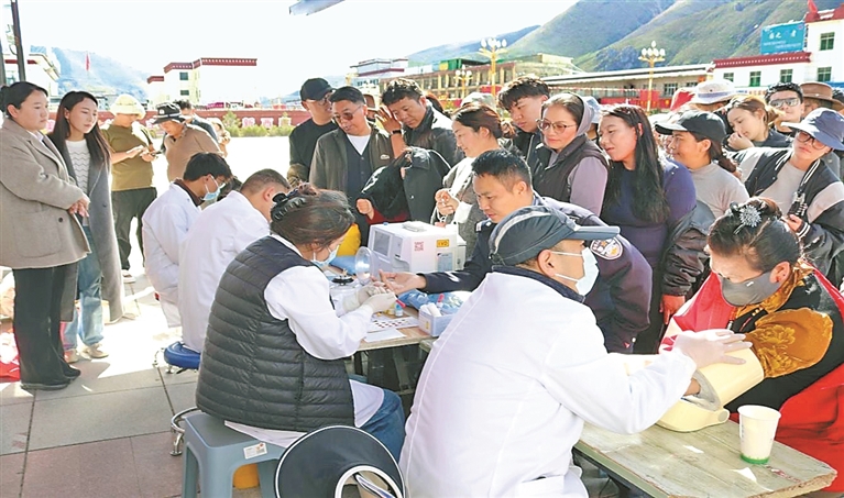 圖為那曲市中心血站赴嘉黎縣開展團(tuán)體采血活動(dòng)。記者 趙書彬 攝