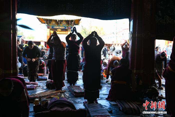 11月28日,西藏拉薩,信眾在大昭寺轉經(jīng)。西藏進入冬季農(nóng)閑期,眾多藏傳佛教信眾從各地匯聚到拉薩,圍繞林廓轉經(jīng)路、大昭寺等地轉經(jīng)、禮佛、朝拜。中新社記者 貢嘎來松 攝