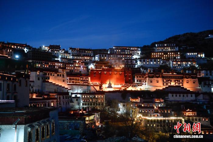 圖為燃燈日酥油燈點亮甘丹寺。 中新社記者 貢嘎來松 攝