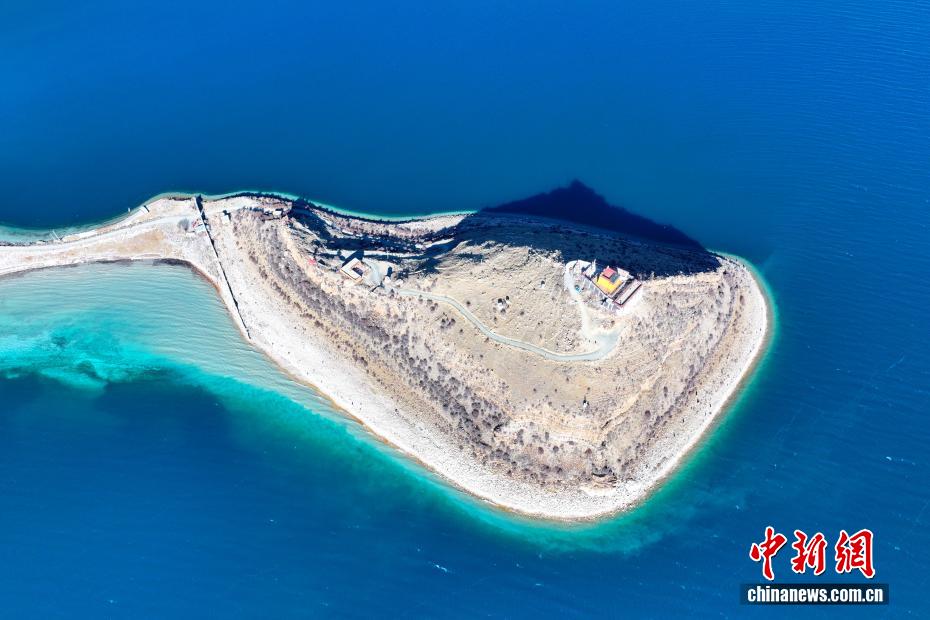 1月17日,西藏羊卓雍錯日托寺風(fēng)光。日托寺位于羊卓雍錯東北岸一半島上,是半島上僅有的建筑,形成了“古剎”“孤寺”景觀,近年在網(wǎng)絡(luò)平臺持續(xù)火熱,成為游客打卡西藏的熱門地標(biāo)。中新社記者 貢嘎來松 攝(無人機(jī)照片)