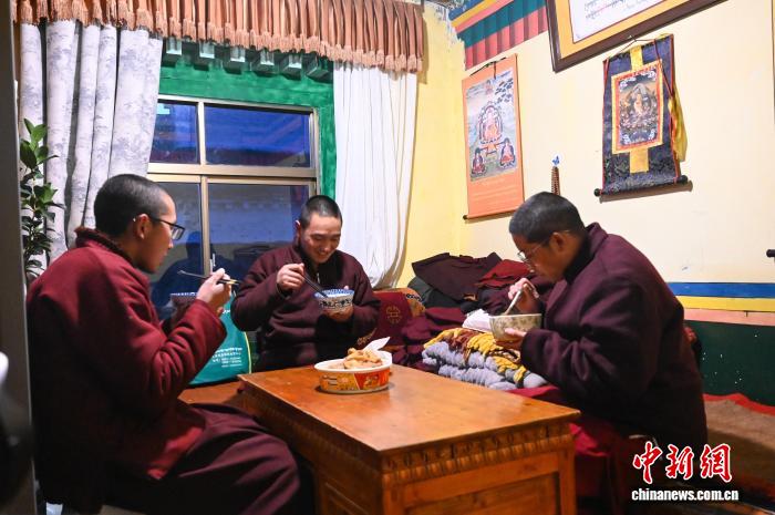 2月16日晚,桑耶寺僧人在“古突”夜吃“古突”,迎接新年到來(lái)。中新社記者 趙朗 攝