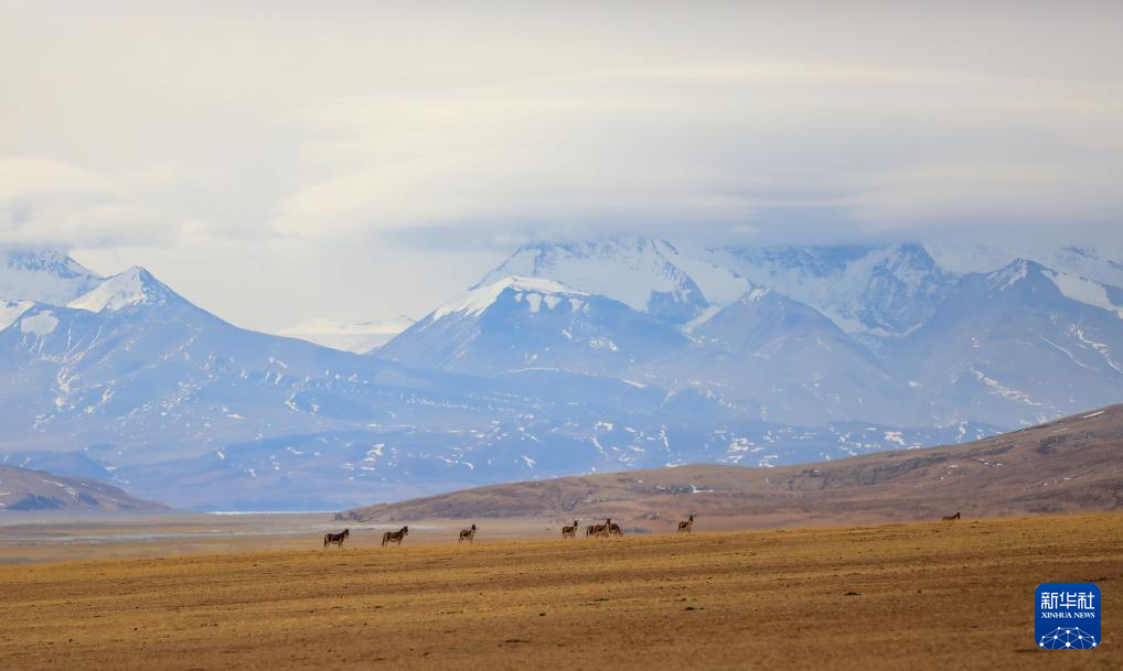3月29日,藏野驢在西藏阿里地區(qū)普蘭縣境內納木那尼峰下覓食。新華社發(fā)(劉曉東攝)