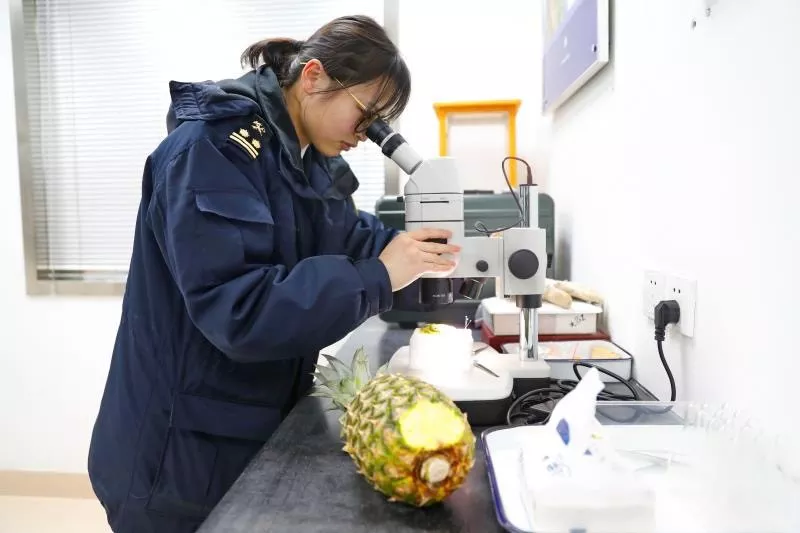 現(xiàn)場(chǎng),海關(guān)關(guān)員迅速進(jìn)行核查貨證,品名、數(shù)量、許可證、提運(yùn)單號(hào)、智利植檢證書,一一核對(duì)相符后按照規(guī)定比例抽查。一箱箱貼著“輸往中華人民共和國(guó)”中英文標(biāo)識(shí)的櫻桃被送上檢疫操作臺(tái)進(jìn)行感官檢驗(yàn),并對(duì)可疑果進(jìn)行剖果,甄別是否有地中海實(shí)蠅等檢疫性有害生物為害;揭下包裝箱標(biāo)簽,在數(shù)據(jù)平臺(tái)上查詢?cè)撆鷻烟业妮斎A櫻桃果園、包裝廠,確認(rèn)是否經(jīng)智利農(nóng)牧局(SAG)注冊(cè),并經(jīng)海關(guān)總署認(rèn)可。最后,要迅速抽取代表性的復(fù)合樣品,送實(shí)驗(yàn)室實(shí)施安全風(fēng)險(xiǎn)監(jiān)控,對(duì)農(nóng)殘和重金屬項(xiàng)目的針對(duì)性檢測(cè)。天剛蒙蒙亮,所有智利櫻桃全部通過(guò)了檢疫,檢驗(yàn)合格的智利櫻桃被迅速分銷至各大商場(chǎng)、超市以及電商渠道。摁下秒表,從櫻桃從智利起飛到進(jìn)入中國(guó)市場(chǎng),整個(gè)過(guò)程只用了不到48個(gè)小時(shí)。