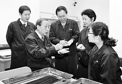 李學(xué)勤(左二)研究團(tuán)隊(duì)正在研究清華簡(jiǎn)。資料圖片