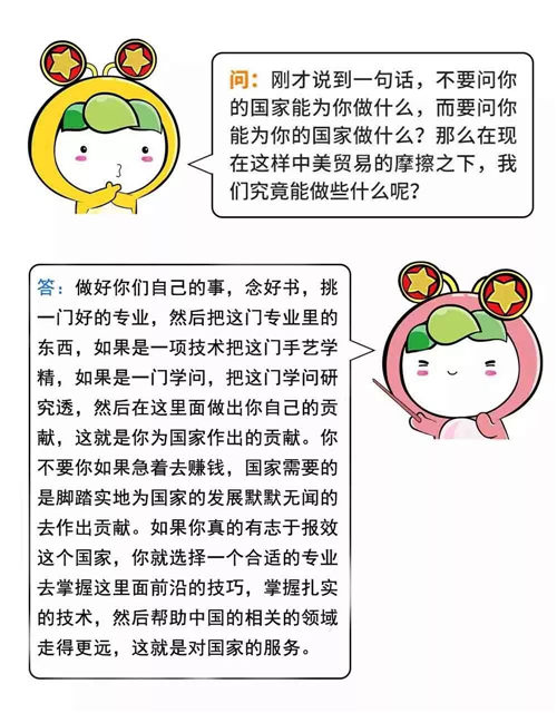 面對(duì)短期的困難和波動(dòng),青年人要清楚“美國(guó)在貿(mào)易戰(zhàn)中提出的要價(jià),不是小打小鬧”,應(yīng)該堅(jiān)定立場(chǎng),“抗?fàn)幍降住保惨帮L(fēng)物長(zhǎng)宜放眼量”,避免局限于眼前的小確幸,被暫時(shí)的挫折和困難所擊倒,要有與國(guó)家民族的發(fā)展同方向的扎實(shí)的行動(dòng),在實(shí)踐中實(shí)現(xiàn)自我價(jià)值。