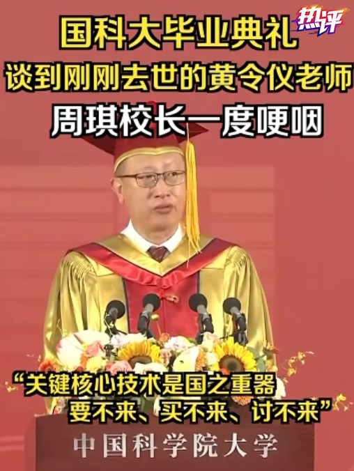 濃烈的家國(guó)情懷,是老師們?cè)诋厴I(yè)致辭里不約而同地真情流露。在中國(guó)人民大學(xué),校長(zhǎng)林尚立引用吳玉章老校長(zhǎng)寄語(yǔ)人大第一屆畢業(yè)生的一段話,勉勵(lì)學(xué)生站到強(qiáng)國(guó)建設(shè)、民族復(fù)興新征程的最前列。在中國(guó)科學(xué)院大學(xué),校長(zhǎng)周琪講起堅(jiān)守芯片研發(fā)一線數(shù)十年、不久前去世的微電子所研究員黃令儀老師,幾度哽咽。每一所大學(xué)都有其獨(dú)特的氣質(zhì)和底蘊(yùn),校長(zhǎng)帶領(lǐng)學(xué)生回顧校史、銘記過(guò)往,不僅在學(xué)生心里種下大學(xué)的精神種子,也引領(lǐng)學(xué)生將追求個(gè)人價(jià)值與實(shí)現(xiàn)社會(huì)價(jià)值緊密聯(lián)結(jié)在一起。