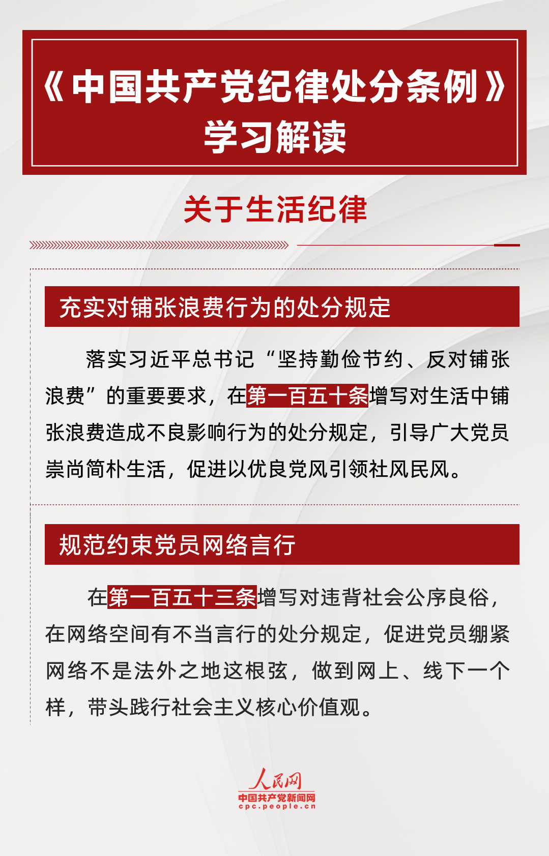 《中國共產(chǎn)黨紀(jì)律處分條例》關(guān)于“對(duì)違反生活紀(jì)律行為的處分”章節(jié)共5條,修改2條。