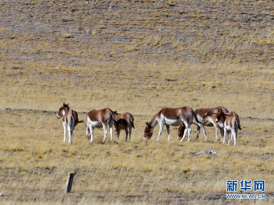 這是10月30日在青海省果洛藏族自治州境內(nèi)拍攝的一群藏野驢。新華社記者 張龍 攝