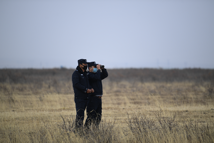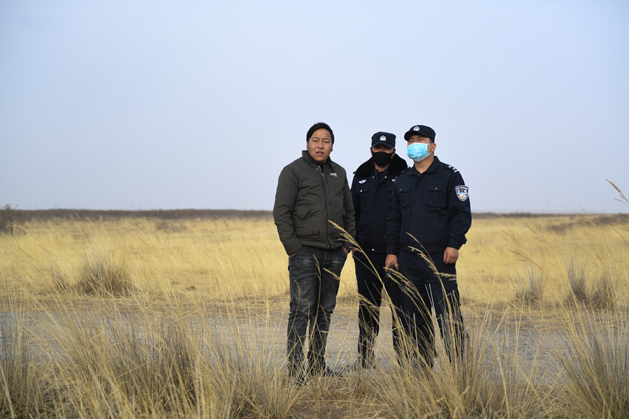 11月20日,剛察縣森林公安局哈爾蓋派出所民警秦輝武(右一)和輔警東知布在特護區(qū)內(nèi)進行日常巡護。新華網(wǎng) 潘彬彬攝