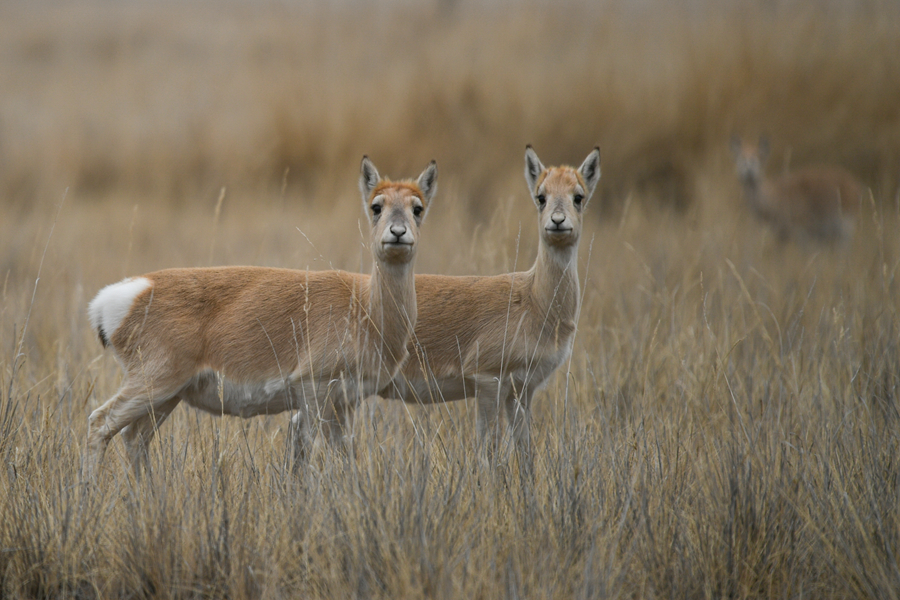 11月20日,一群普氏原羚在青海湖普氏原羚特護區(qū)內(nèi)活動。新華網(wǎng) 潘彬彬 攝