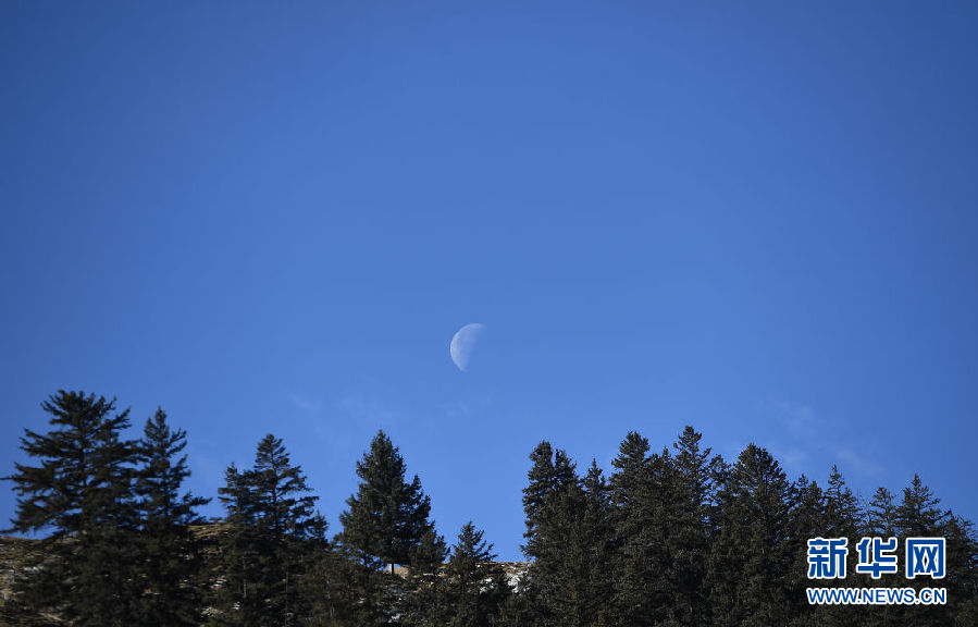 在青海省祁連縣,森林與月亮相映成畫(huà)(12月8日攝)。新華社記者 張宏祥 攝