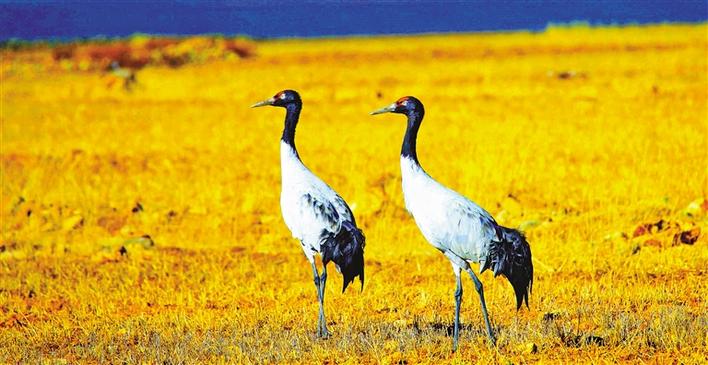 被林周縣當?shù)厝罕姺Q為“祥鳥”的紅頭黑頸鶴。