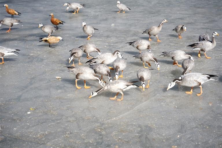 “我們住在頓珠金融城,最近氣溫回暖,我和老伴每天都會早起到附近的公園散步。成群的候鳥與湛藍(lán)的天空,搭配遠(yuǎn)處的雪景,很是養(yǎng)眼?!泵赚旑D珠帶著笑意說。