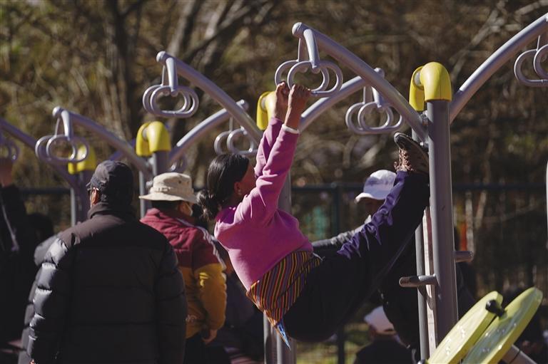 漫步公園,到處都是人們晨練的身影。太極、柔力球、廣場舞,清晨的宗角祿康公園十分熱鬧。在公園一角,還有人在跳鍋莊舞,他們隨著音樂,一會兒扭胯、一會兒踢腿、一會兒擺手……個個精神飽滿。