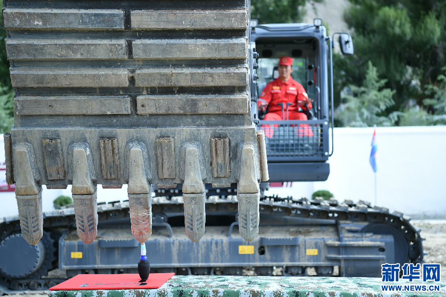 8月5日,工作人員在拉薩基地演示應(yīng)急搶險動態(tài)精準(zhǔn)科目—“挖掘機(jī)寫字”。新華網(wǎng) 旦增努布 攝