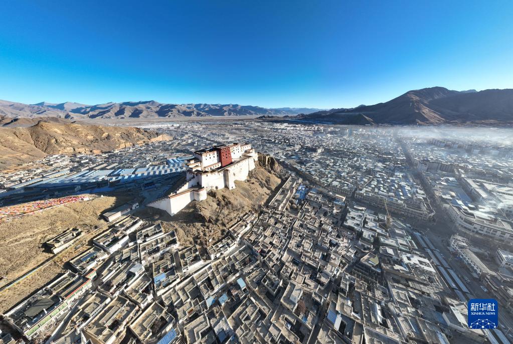 1月24日拍攝的日喀則市的清晨(無(wú)人機(jī)照片)。新華社記者 晉美多吉 攝