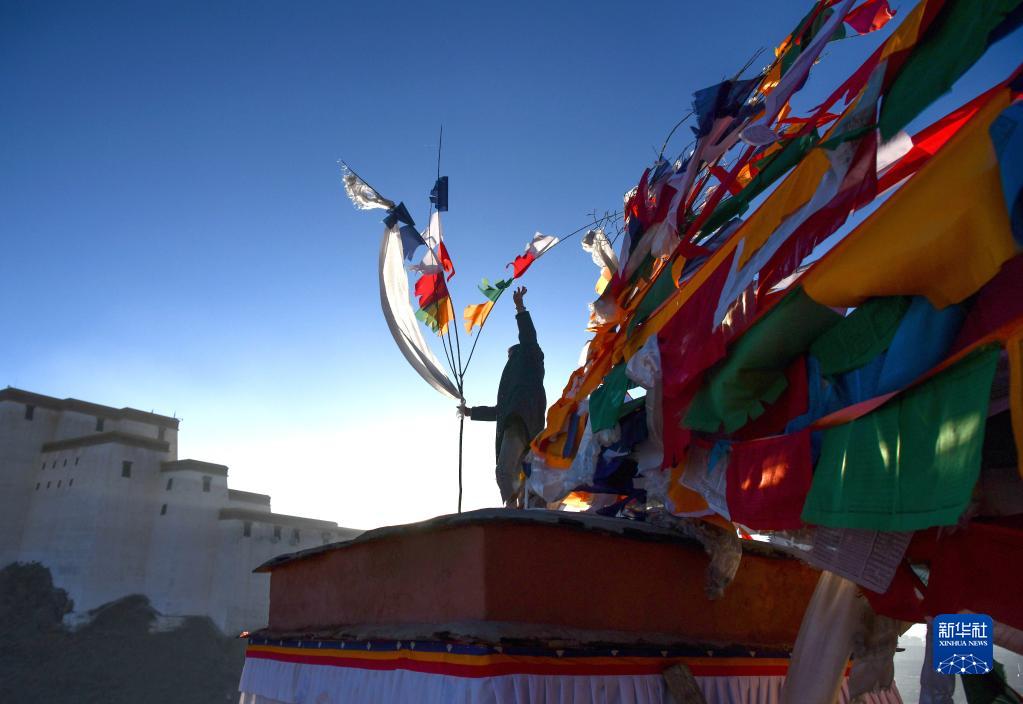西藏日喀則地方藏歷農(nóng)家新年期間,藏族群眾沿襲傳統(tǒng),一大早就在山頂和自家屋頂上豎起新經(jīng)幡,祈愿新年風(fēng)調(diào)雨順、國(guó)泰民安。