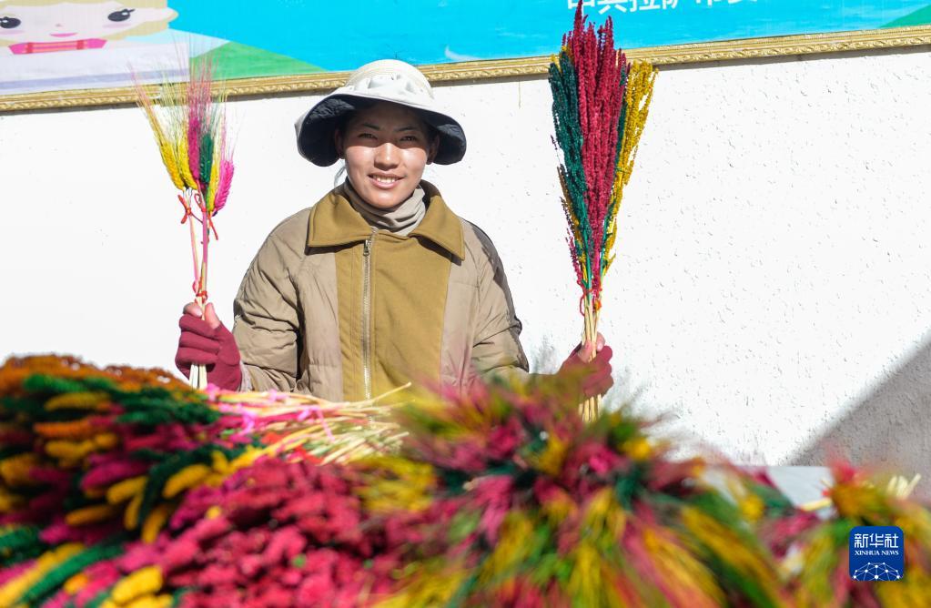2月2日,商販展示自己制作的五彩青稞穗。新華社記者晉美多吉 攝
