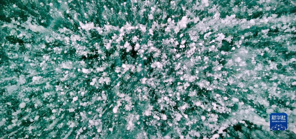 這是瓊穆崗嘎冰川冰湖湖面的“氣泡冰”(手機照片,2月20日攝)。新華社記者 沈虹冰 攝