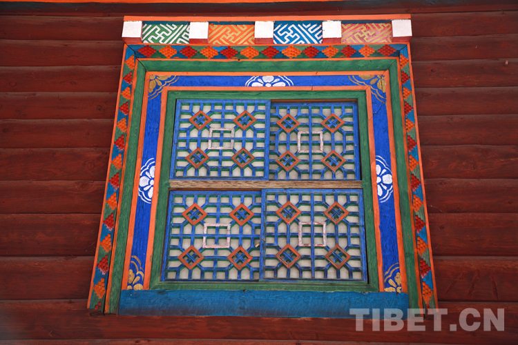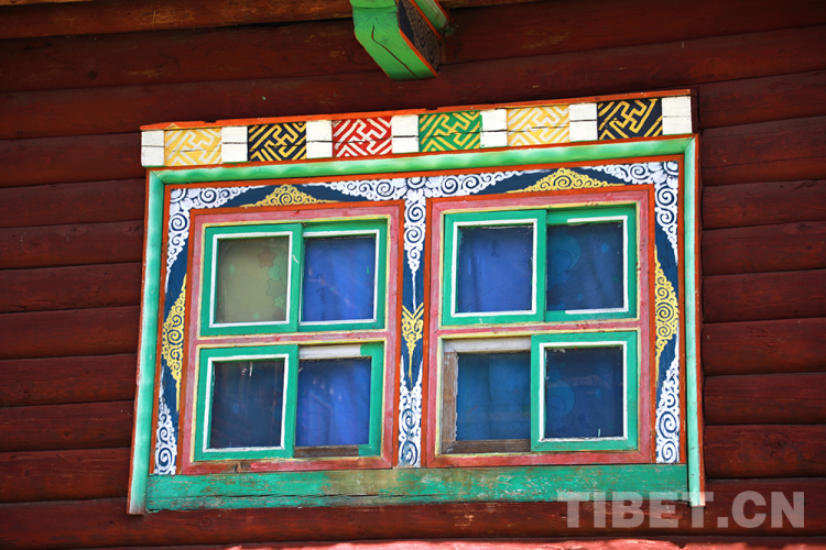 窗戶中的窗飾格、窗套和窗楣等,都是傳統(tǒng)藏式民居特色的體現(xiàn)。窗框為方形,多為田字形窗扇,現(xiàn)在也有一些是漢式小方格和花格窗扇,裝飾著特色花紋。