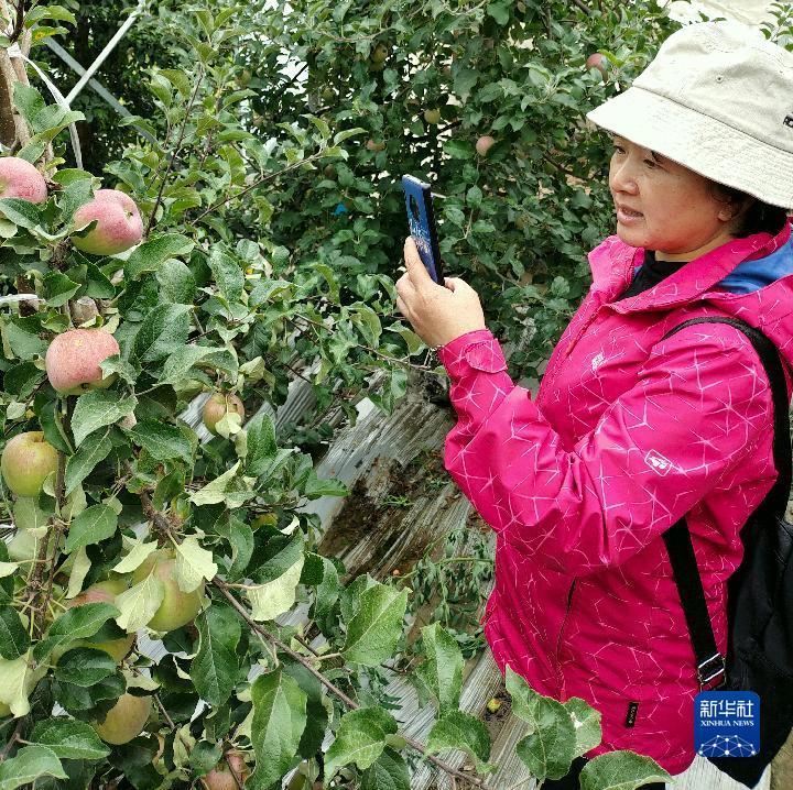 曾秀麗在林芝市米林農(nóng)場(chǎng)的溫室里記錄果實(shí)生長(zhǎng)情況。新華社記者 劉洲鵬 攝