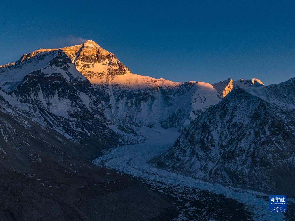 這是5月11日日落時(shí)分拍攝的珠穆朗瑪峰(無(wú)人機(jī)照片)。新華社記者 孫非 攝