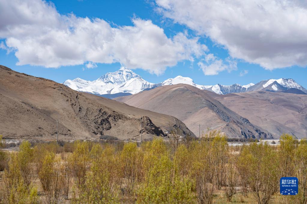 這是在珠峰國(guó)家級(jí)自然保護(hù)區(qū)內(nèi)拍攝的沙棘林和濕地(5月25日攝,無(wú)人機(jī)照片)。新華社記者 孫非 攝