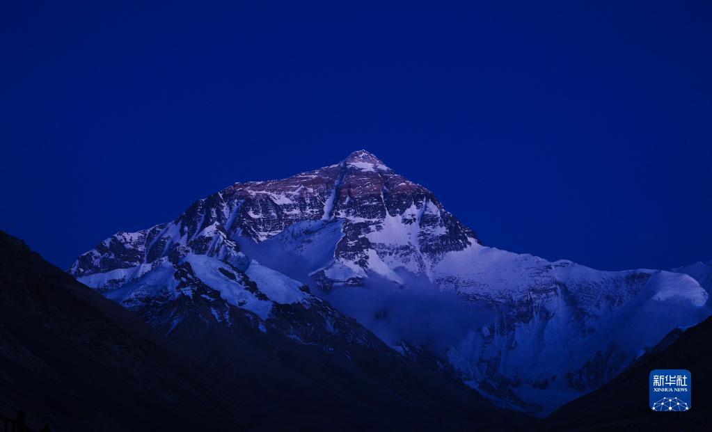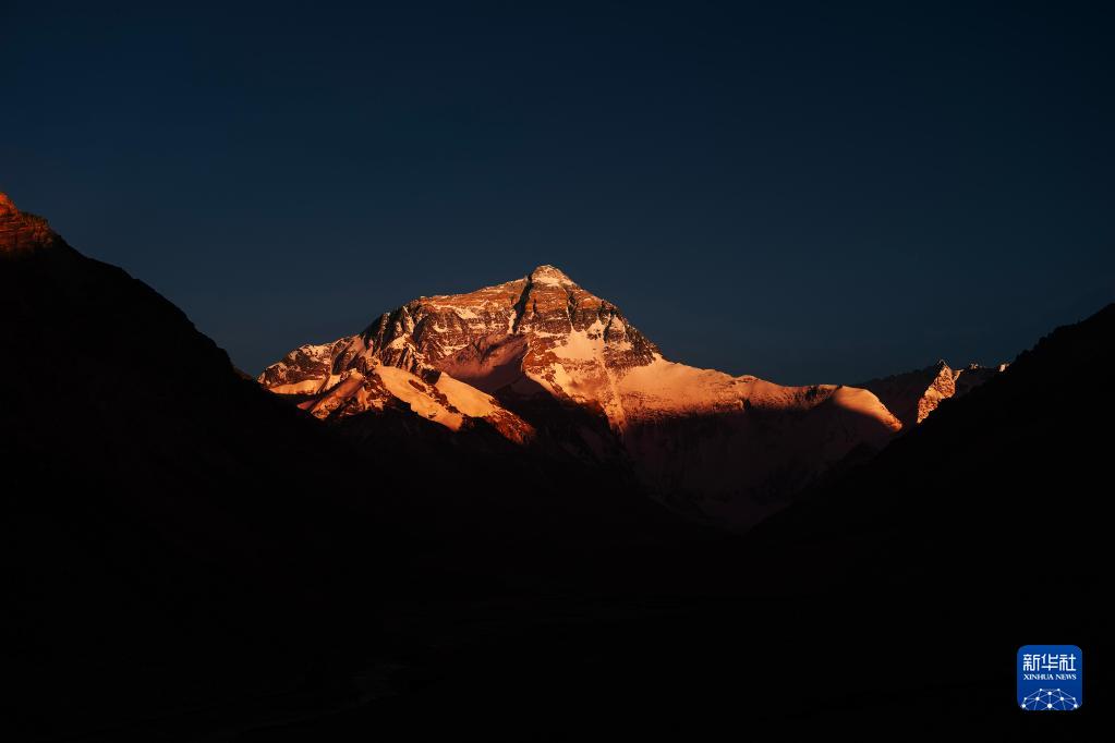 6月4日拍攝的太陽完全落山之后的珠峰。新華社記者 費(fèi)茂華 攝