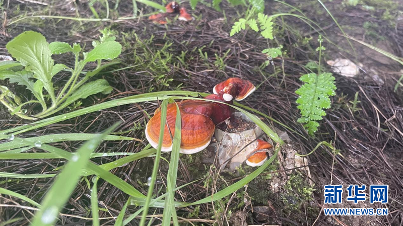 圖為紅太陽科技示范家庭農(nóng)場的種植棚內(nèi),仿林下野生環(huán)境種植的靈芝。新華網(wǎng) 陳穎 攝