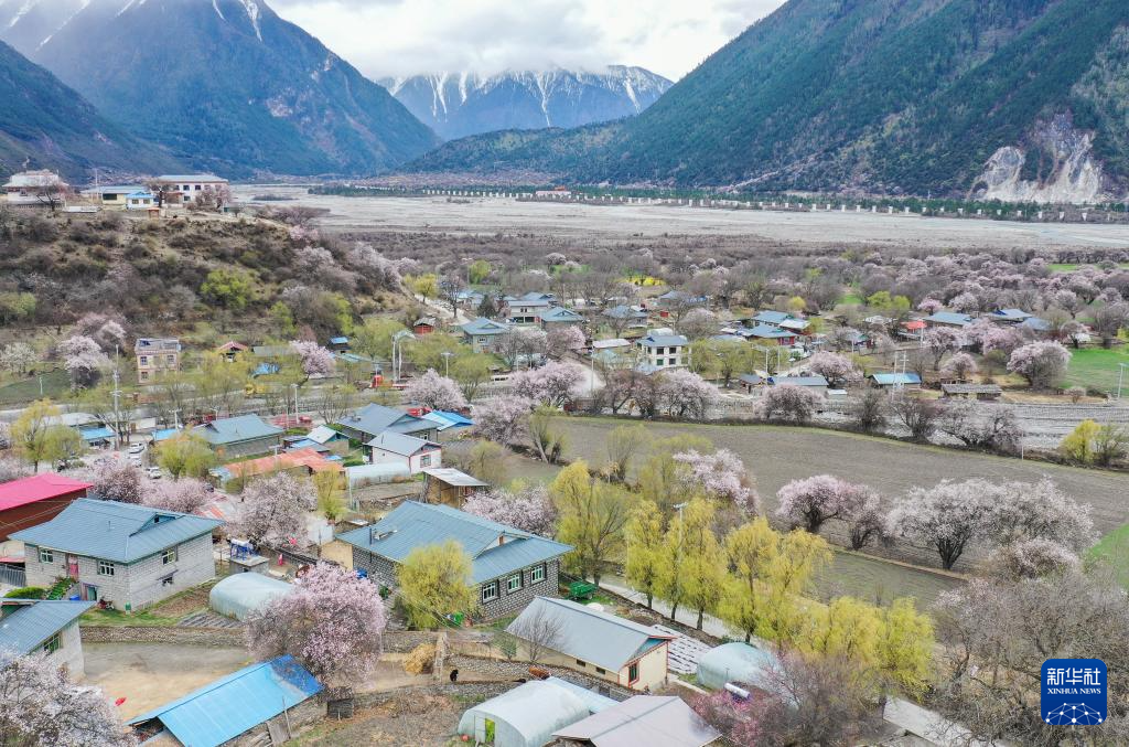 這是在林芝市巴宜區(qū)嘎拉村拍攝的桃花(4月1日攝,無人機(jī)照片)。新華社記者 丁增尼達(dá) 攝