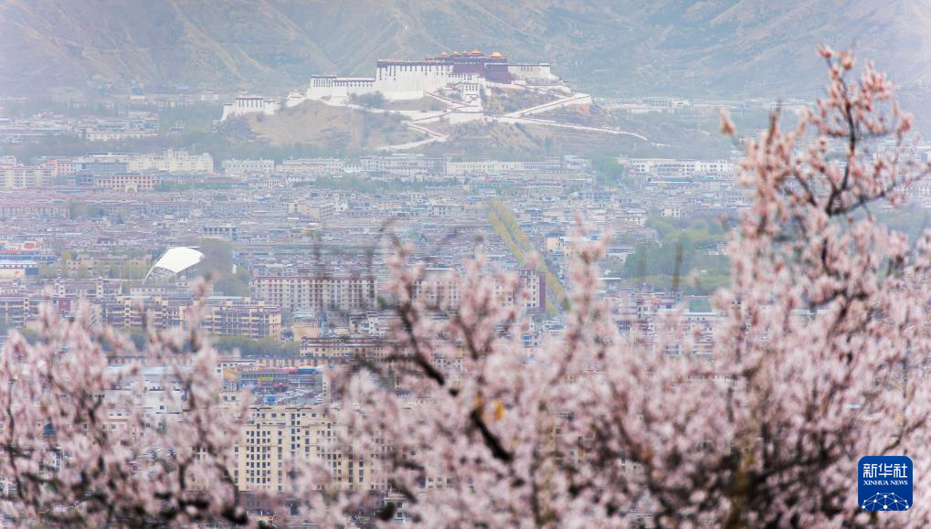 ??在位于拉薩北部的古剎帕邦喀附近拍攝的盛開的桃花,遠(yuǎn)處是布達(dá)拉宮(4月9日攝)。新華社記者 丁增尼達(dá) 攝