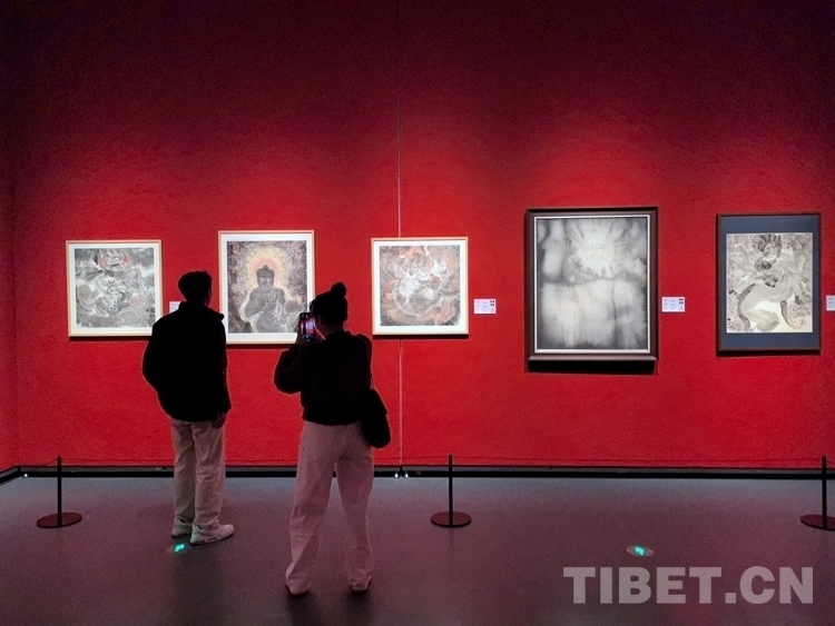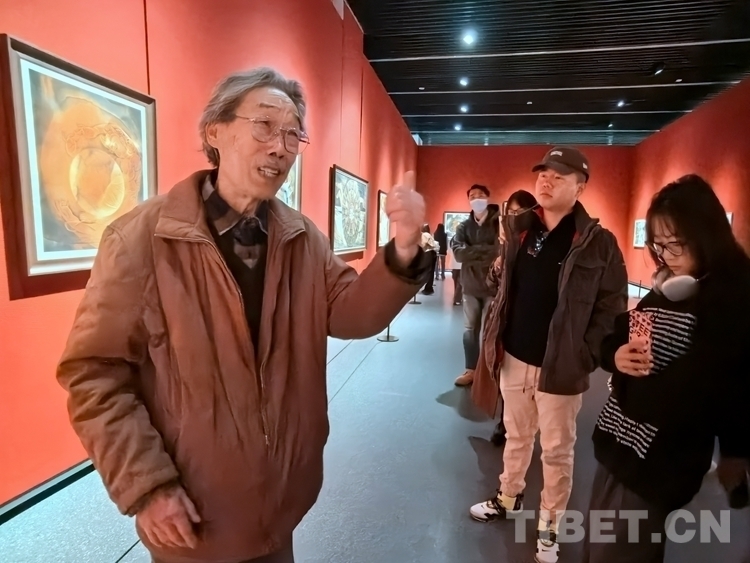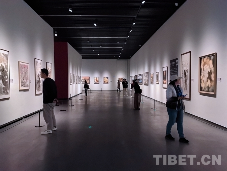 走進(jìn)西藏美術(shù)館,館內(nèi)A區(qū)1號展廳正在展出“雪域名家”系列的第一個(gè)展覽“雪域?qū)簟び嘤研拿佬g(shù)作品展”。