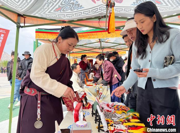 “今年我?guī)е锬厥に嚻啡チ私K、北京推介,今天來到拉薩進行推介我非常高興,今早有不少游客來購買,他們對我的產品很感興趣,希望通過推介會,能讓這些精美的手工藝品被更多人了解和喜愛?!鼻嗪J∮駱洳刈遄灾沃菔谭沁z傳承人才仁看卓正忙著向游客介紹產品。