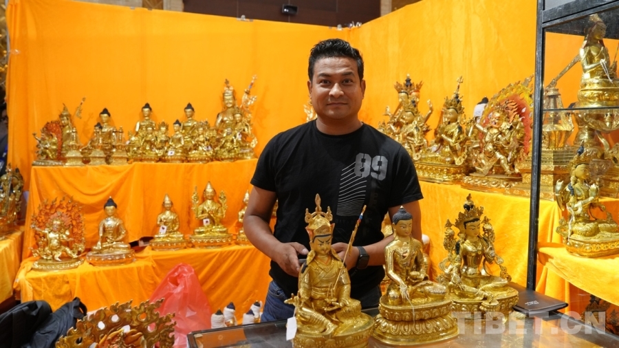 Bikram來自尼泊爾首都加德滿都,十年前來過拉薩,深深被這座城市所吸引,這次通過中外商品展銷會再次來到一直向往的拉薩,他非常開心?!拔覀兡岵礌柕氖止に嚻吩谌澜绯雒?,這次我們從尼泊爾帶來的有唐卡、佛像、毛毯等,都是全手工制作的,希望在此次展銷會能夠得到西藏消費者的支持與喜愛?!?/p>